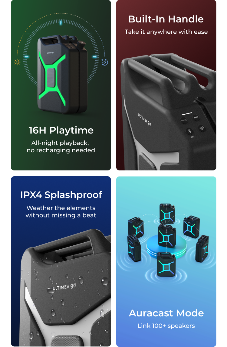 Whether it’s a rooftop jam, beach day, or tailgate blowout, Ultimea Go fits every vibe. Built to be loud, bold, and ready to travel.