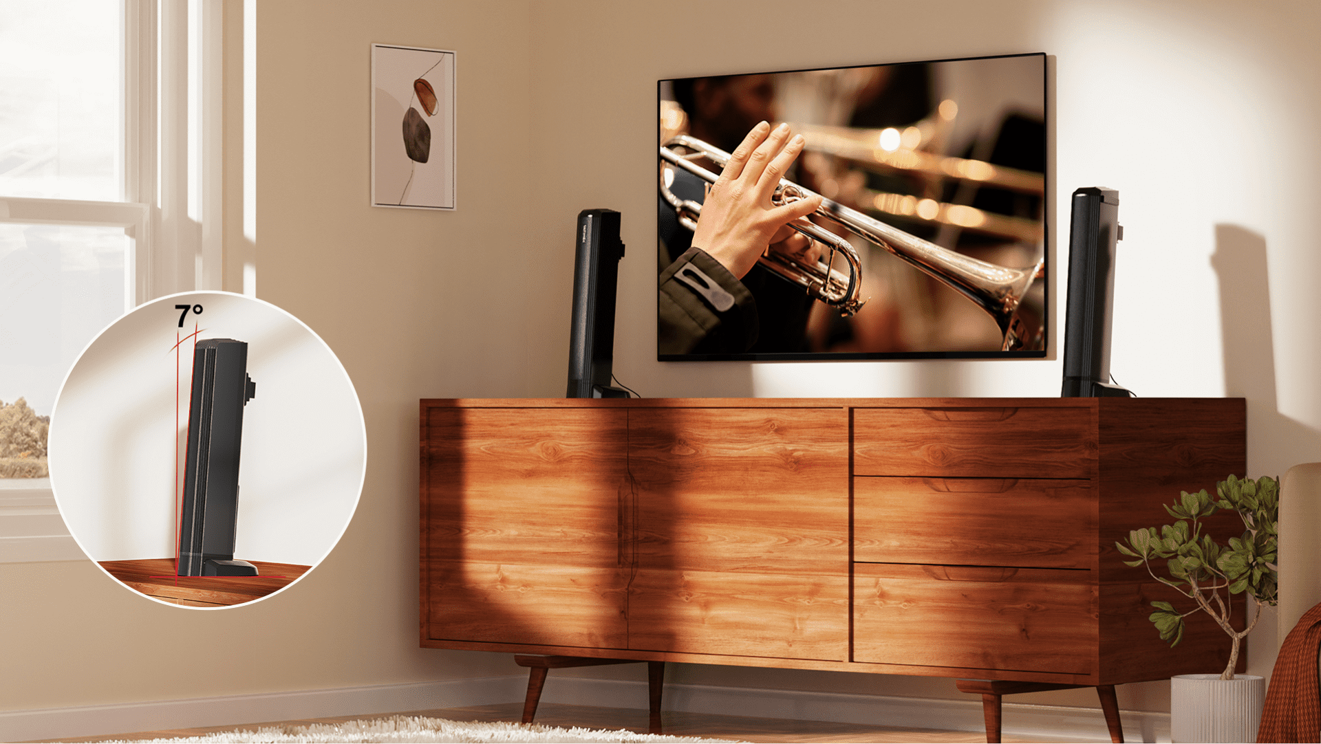 Exclusive detail-filled 7° tilt design for unbiased sound.