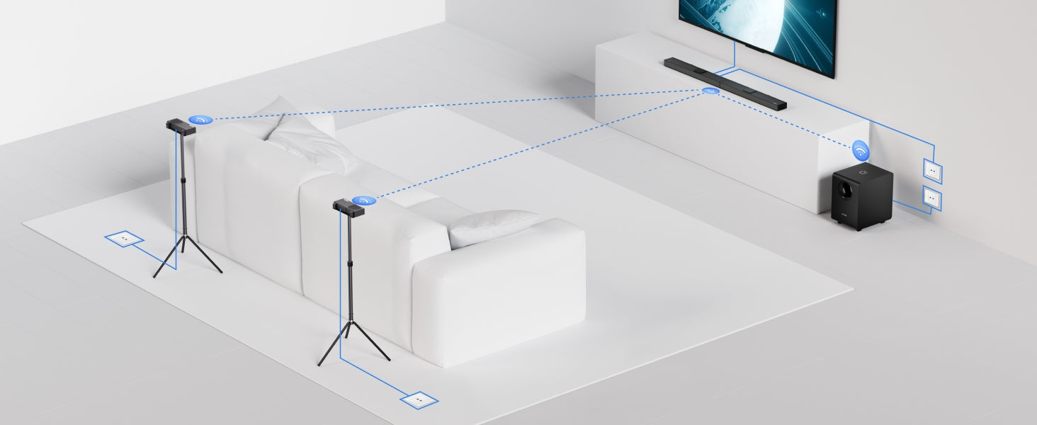 Wireless Rear Speakers: Immersive surround sound, effortlessly connected.